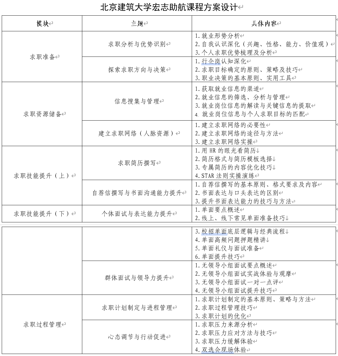 精准摸底帮扶,优化师资课程。加强课前调研和课后测评,全面掌握学生特点、求职意向、培训需求以及学员对课程反馈等信息,针对性调整各专题授课内容;强化班级管理,为每个班级配备教师班主任1名,负责学生日常学习管理,同时制作了精美的学员手册,帮助学生更好更快掌握求职要点;集中师资力量,围绕“求职分析与优势识别、就业信息搜集与管理、求职心态调节”等10个主题,为11所高校的200余名学生提供就业能力培训6期