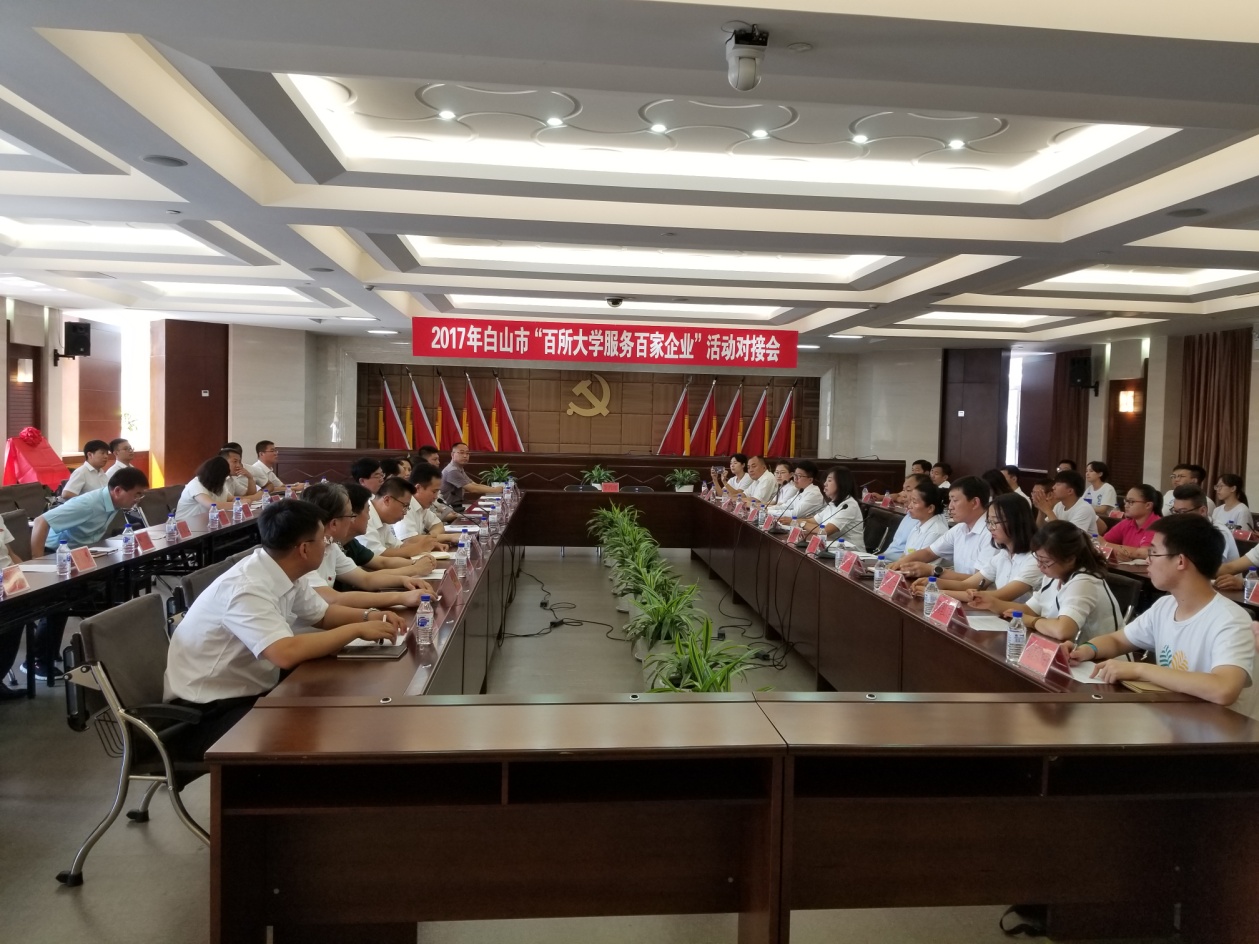 白山市市委为进一步深化“印象长白山,筑梦十三五”百所高校进白山大学生暑期社会实践活动的展开,组织了“百所大学服务百家企业”活动对接会,2017年7月18日,我校应邀参与此次活动,与各高校实践团队分享在白山开展暑期社会实践活动的心得体会,了解白山各企业的人才需求情况,搭建高校和企业沟通的平台,促进校企合作。