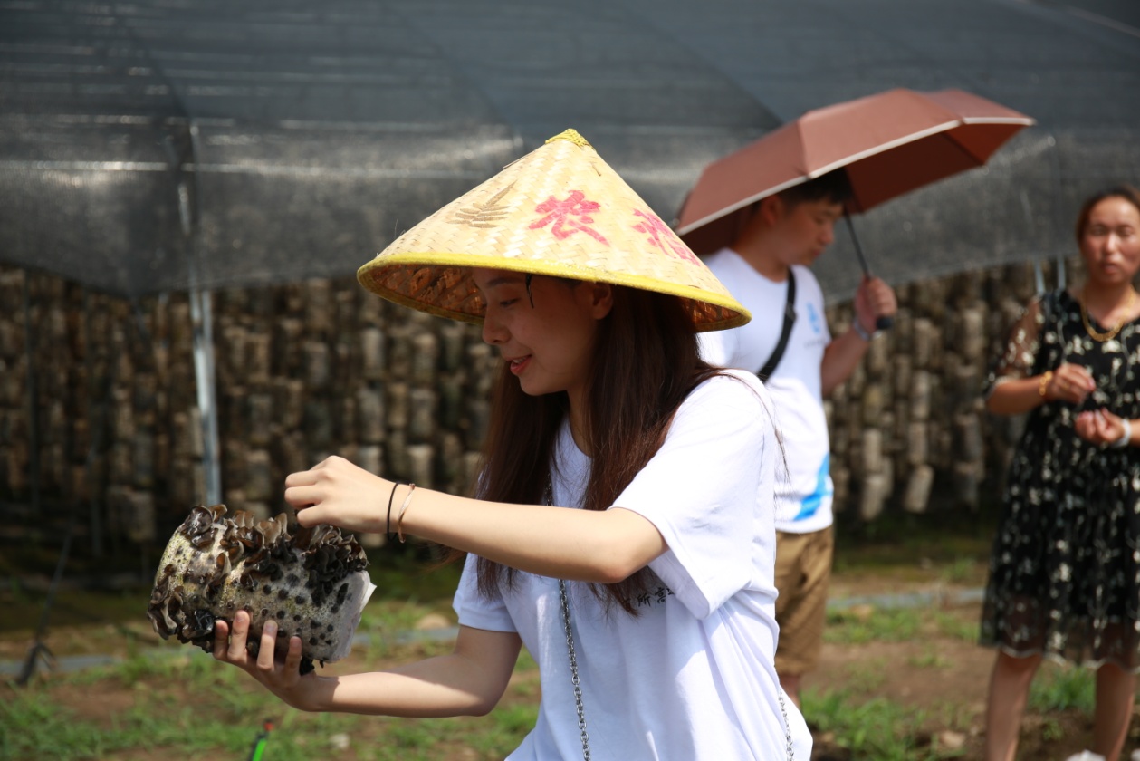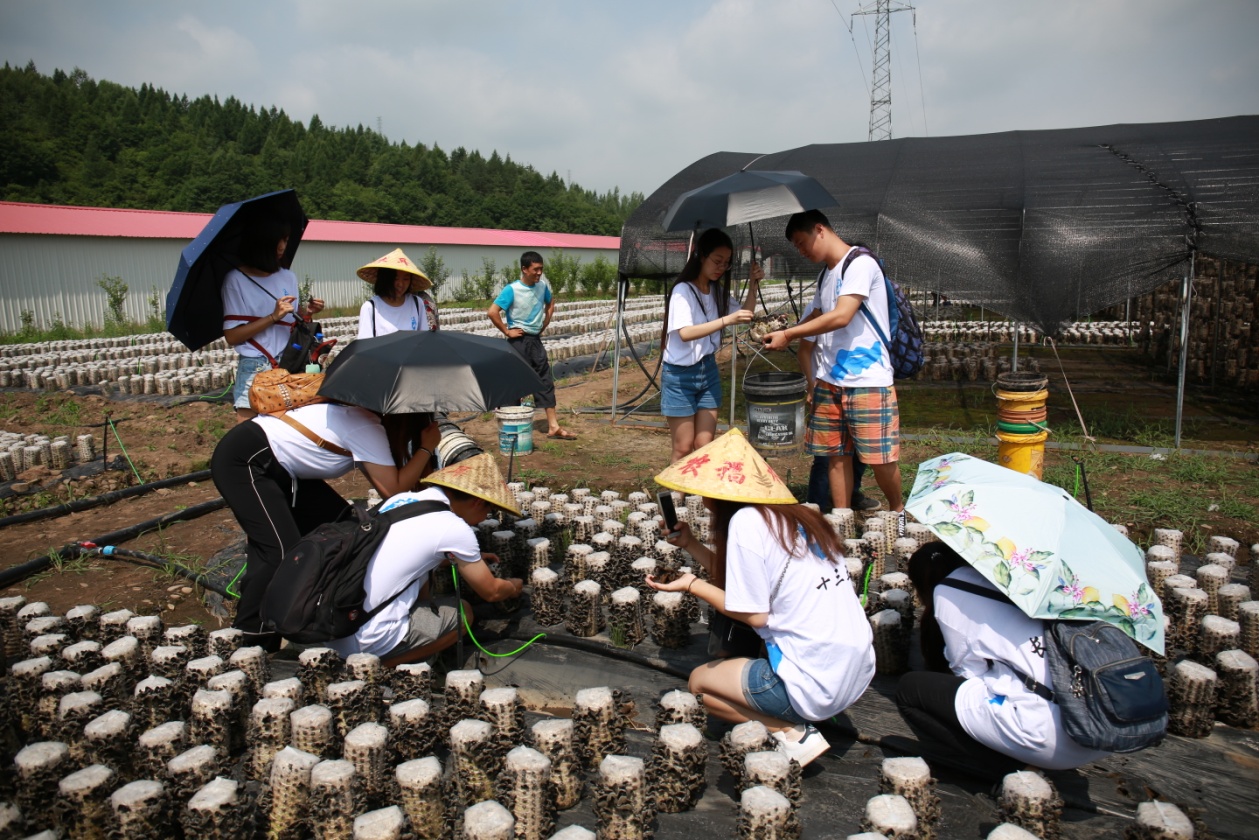 离开兴盛社区之后,实践团队一行来到木耳采摘基地,学习和体验木耳生产和采摘的过程。