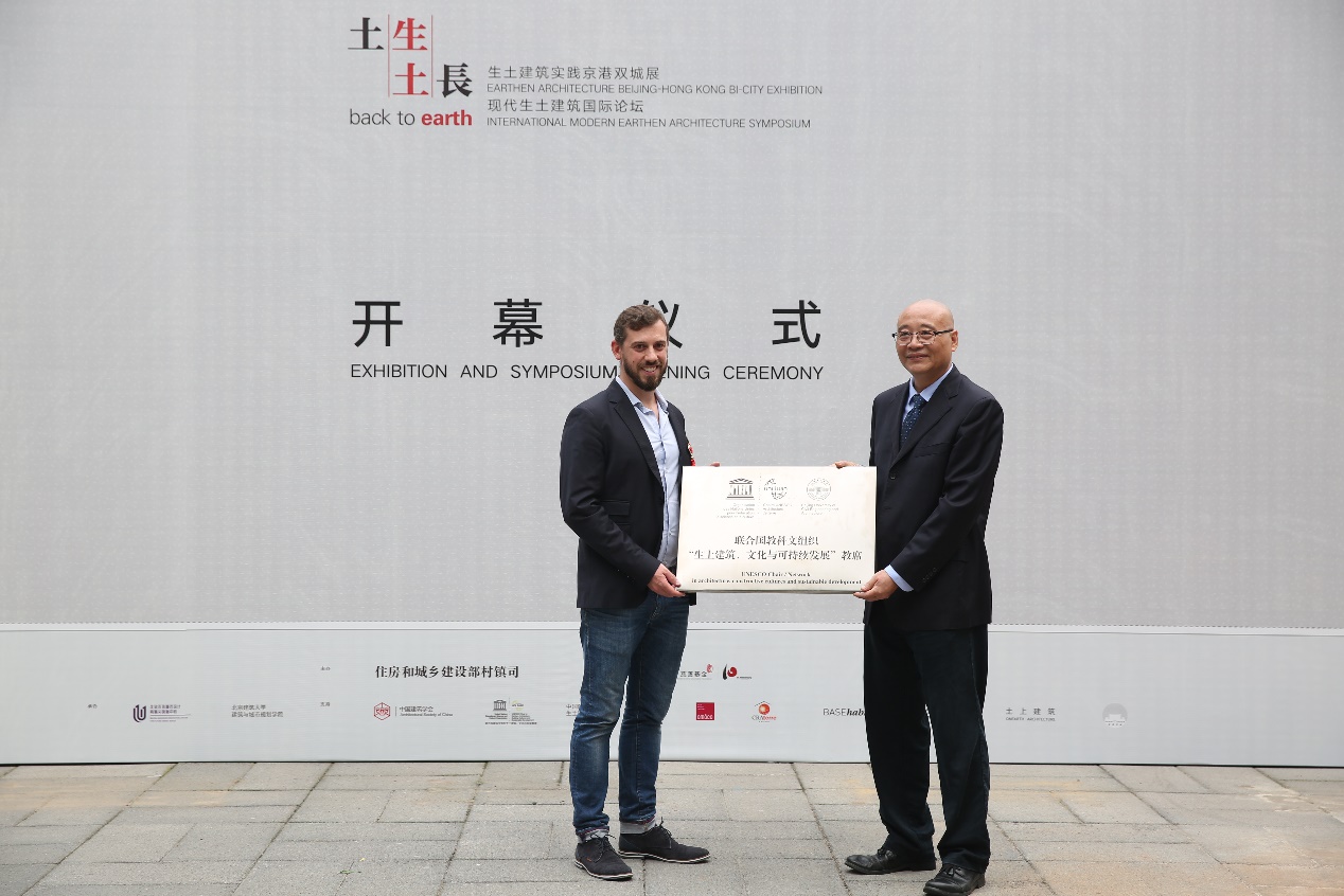 9月16日,由住房城乡建设部村镇建设司、无止桥慈善基金主办,我校承办的“土生土长”生土建筑实践京港双城展暨现代生土建筑国际论坛在我校西城校区隆重开幕。开幕式上,联合国教科文组织代表、法国国际生土建筑中心副主席Jean-Marie Le Tiec先生与我校副校长汪苏共同举行了我校加入联合国教科文组织 “生土建筑、文化与可持续发展”教席的授牌仪式,使我校正式成为联合国教科文组织 “生土建筑、文化与可持续发展”教席。