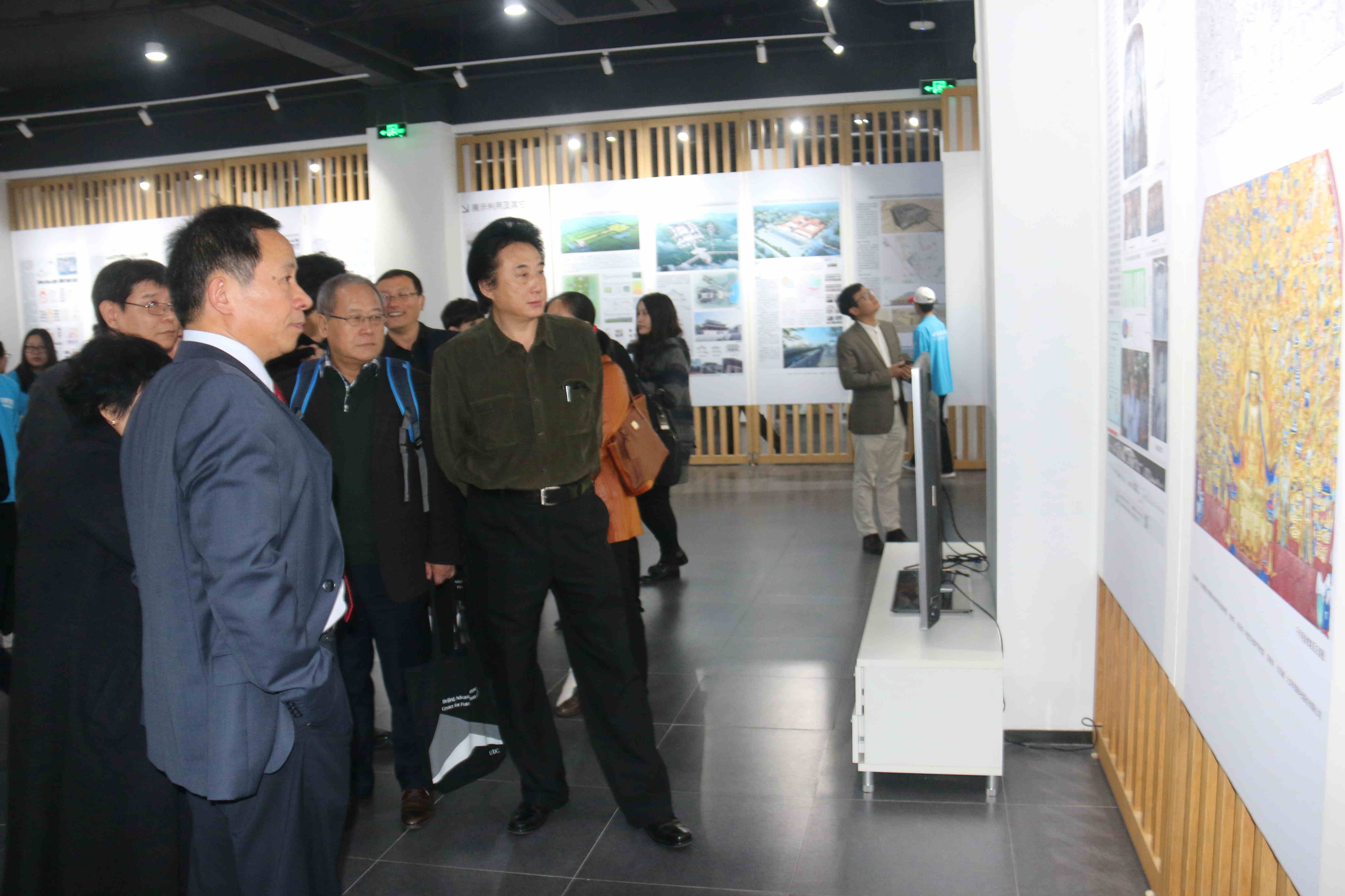 论坛结束后,在副校长张大玉的陪同下,与会专家参观了位于西城区创空间的“保护建筑遗产,传承优秀文化——开云电竞pg软件文化遗产保护与传承产学研成果展”,在建筑遗产研究院常务副院长汤羽扬的讲解下,两位院士与各高校院长们依次参观我校师生在建筑遗产保护领域所取得的教学及科研成果,与会专家不时驻足观看,并与学校领导、老师交流。