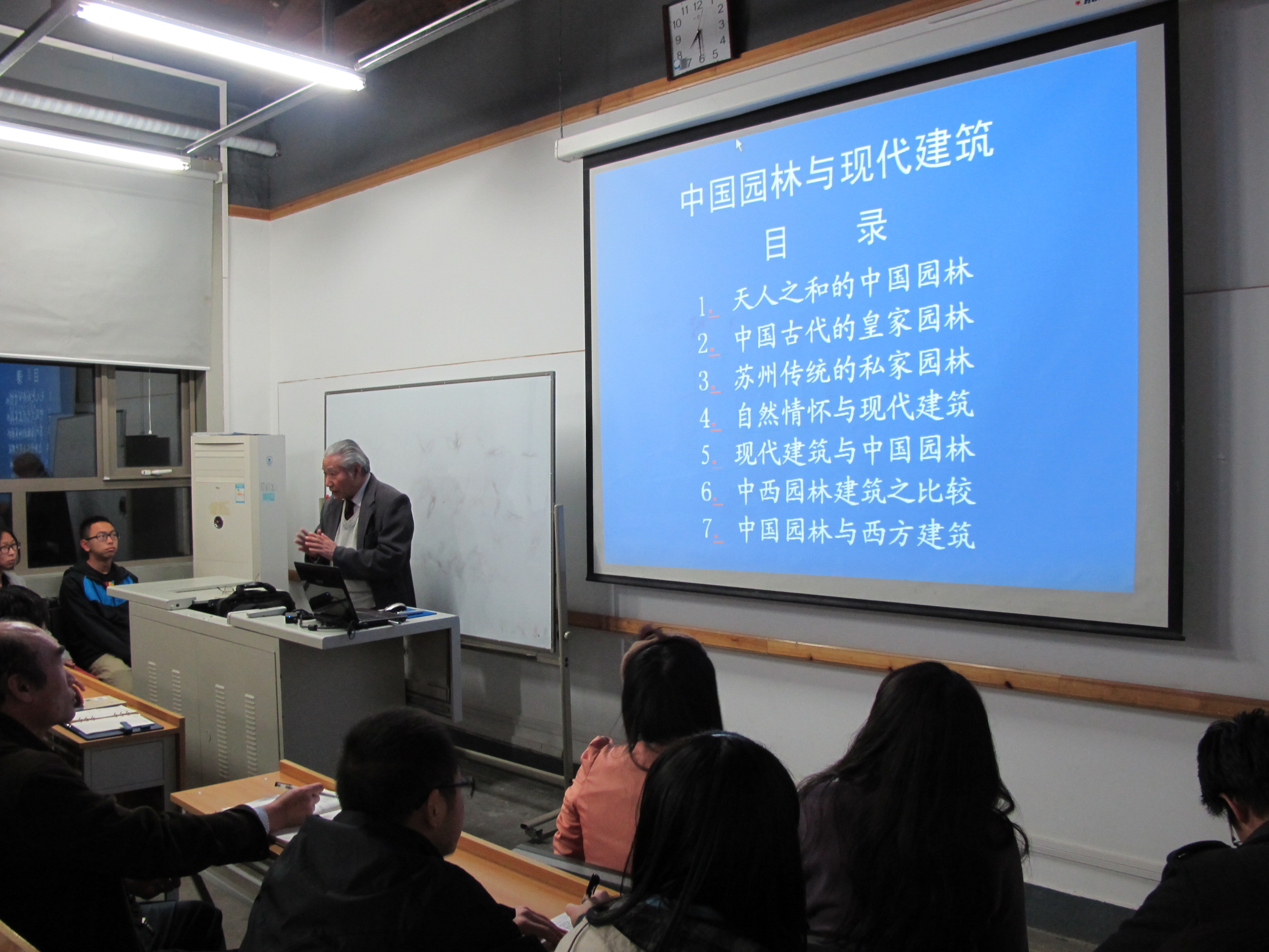 为拓宽同学们的知识面,提高专业素养,建筑学院研究生会有幸请到了本校退休教师,知名教授韩增禄先生来到建筑与城市规划学院举办了一场题目为“中国传统建筑原理”的学术讲座。韩增禄教授主要从事哲学、自然辩证法、科学方法论、易学与建筑文化等方面的教学与研究工作,是中国自然辩证法研究会理事,全国科学方法论专业委员会主任委员,全国易学与科学专业委员会副理事长,是当之无愧的学术泰斗。讲座于4月15日晚19:30分开始,持续近两个半小时,分为主题讲解和观众提问两个环节。在第一个环节,韩教授围绕中国园林与中国建筑展开演讲,穿插传统易学原理的内容,结合实例,深入浅出,使同学们收获了丰富的知识,受益匪浅。观众提问环节,韩教授耐心解答了同学们的各种问题,解开了同学们心中的困惑。