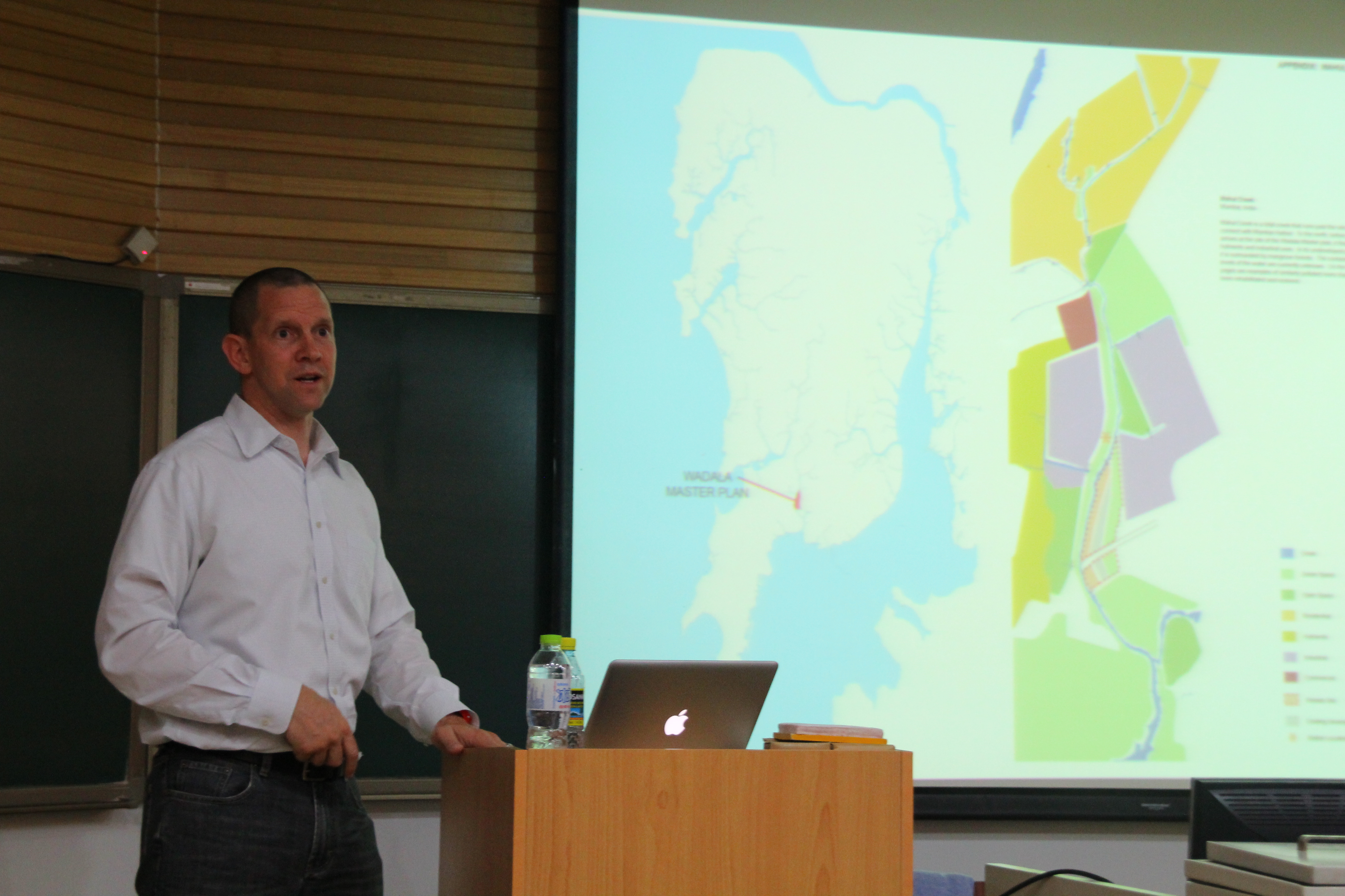 Earl Jackson先生本次讲座主要就气候变化、弹性城市等话题与大家分享他的经验与观点。首先以水为切入点,介绍他及他的团队完成的一些与水有关的项目。他在混合开发、滨水区域设计、公交导向开发(TOD)、以及贫民窟更新和大学校园规划设计等方面的实践遍及世界各地,包括印度,中国,韩国,中东地区,东南亚地区,以及墨西哥和美国本土。