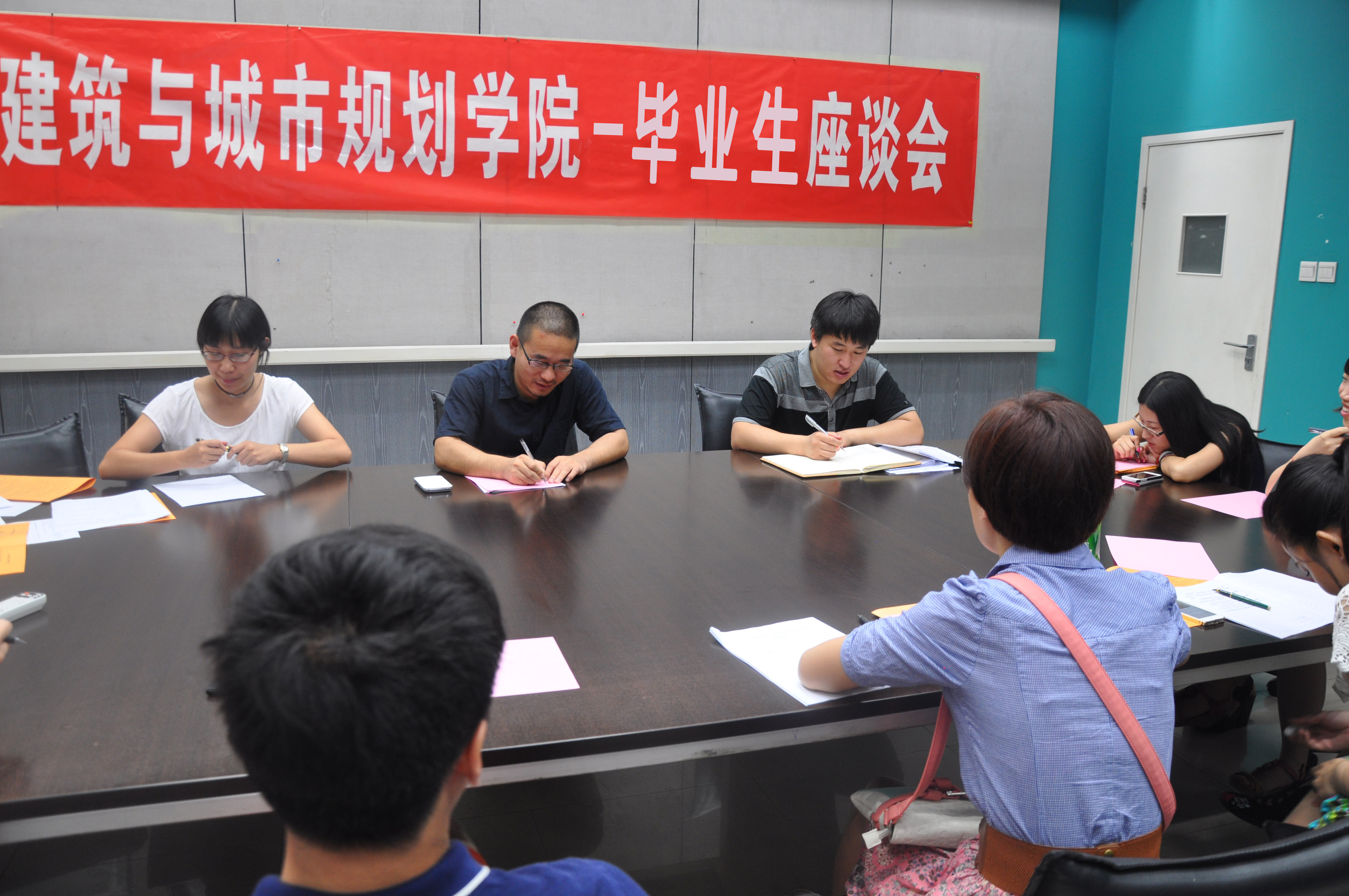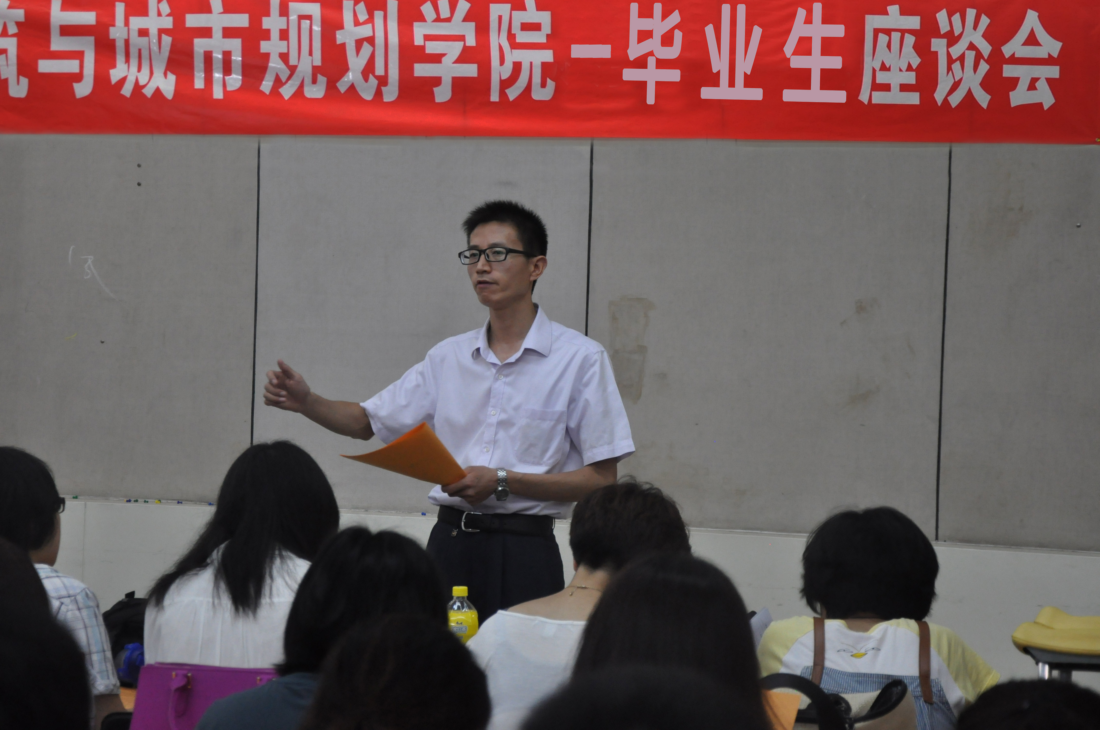 2013年7月2日,建筑学院在教四多功能厅举办了2013届毕业生座谈会。建筑学院党总支书记牛磊、副书记丁奇、团总支书记康健、辅导员李小虎等出席了座谈会。