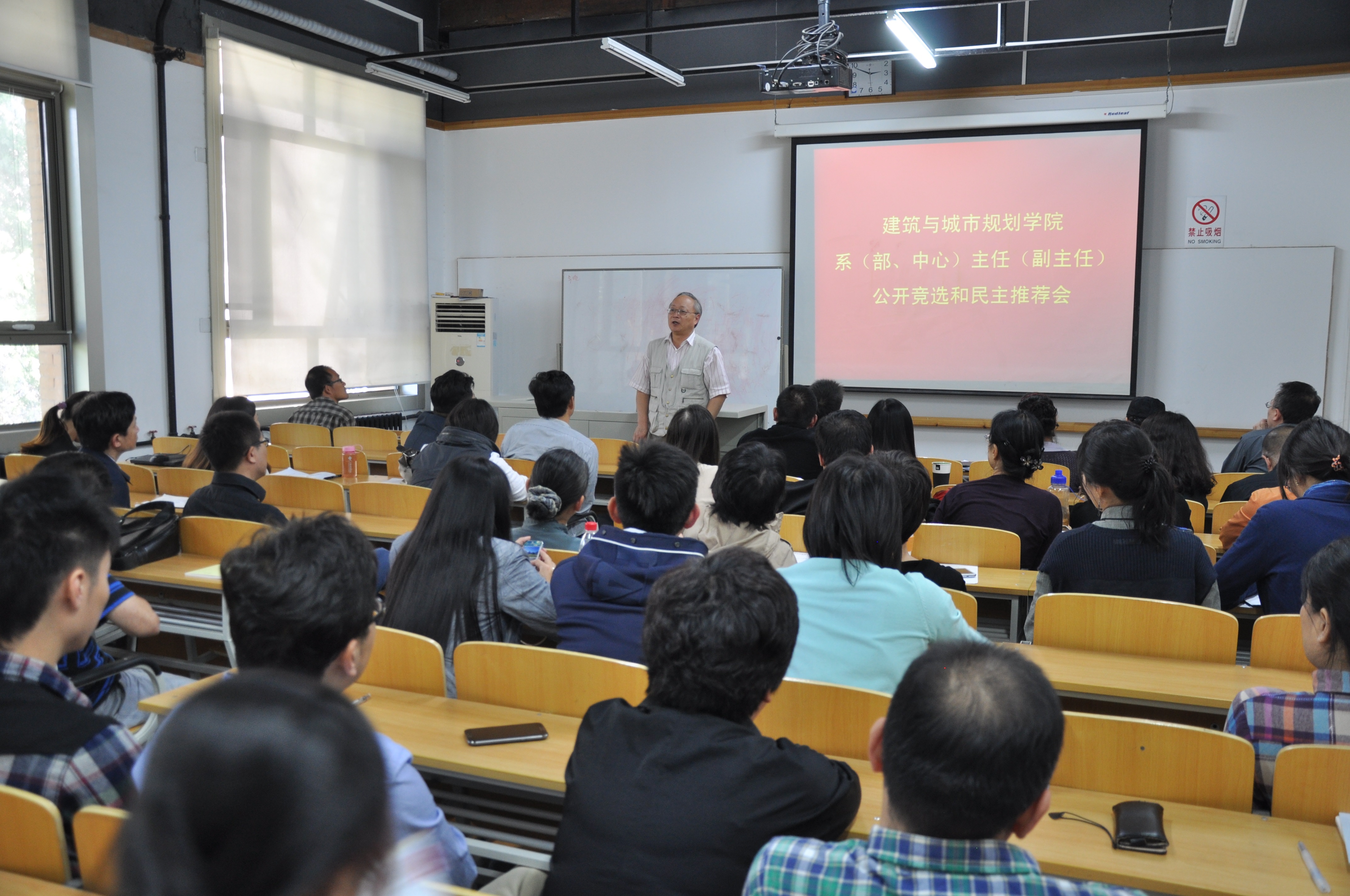 本次系(部、中心)主任(副主任)聘任工作分宣传动员、组织推荐及个人自荐、公开竞聘和民主推荐、考察讨论确定人选、任前公示和任命等环节,为开展好此项工作,建筑学院党政班子多方征求意见,并多次讨论和研究新聘期系(部、中心)主任(副主任)聘任工作。今年7月,学院通过发放并填写推荐表的形式广泛征集全体教师对系(部、中心)主任(副主任)人选的推荐意见,考察基层教师民意。在9月17日的全体教师大会上,党总支书记牛磊专题向全院老师解读“建筑与城市规划学院系(部、中心)主任、副主任聘任通知”文件精神,动员老师积极参加自荐,为学院的事业发展贡献力量。为团结更多的力量参与学院中心工作,加强后备干部及青年教师培养,在以往1正(主任)1副(党支部书记兼任副主任)基础上,学院党政决定在部分部门增设1名专职副主任,旨在以此加强基层部门建设,更好的团结部门老师开展工作,多出成果。
