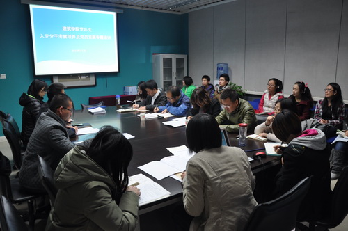 为加大对基层干部的教育培养,继新聘期系(部、中心、室)主任专题培训后,建筑学院又专题开展党务工作干部专题培训会。2013年11月19日中午,建筑学院党总支全体党支部书记及支委专题理论学习及业务培训在建筑学院会议室如期开展。建筑学院党总支书记牛磊老师、党总支副书记丁奇老师及全部党支部书记及支部委员等30余名师生出席了此次会议。