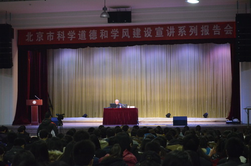 2013年12月5日,14点30分,北京市科学道德和学风建设宣讲系列报告会在我校大学生活动中心隆重召开,建筑学院组织大一新生参加本次活动,同时此次讲座也是思想政治教育课程的重要学习内容。