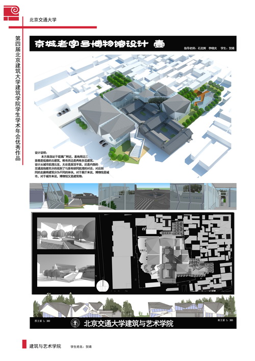 在此次展出中,有来中央美术学院、北京交通大学以及开云电竞pg软件学生的优秀设计作品。中央美术学院的聚落设计布局精美,色彩丰富,搭配协调,给人以视觉享受。北京交通大学的学生京城老字号博物馆设计思路清晰,画面简洁,线条流畅。我校的亦庄轻轨站概念设计将城市轻轨轻盈的节奏感用“龙”来作出形象的比喻。