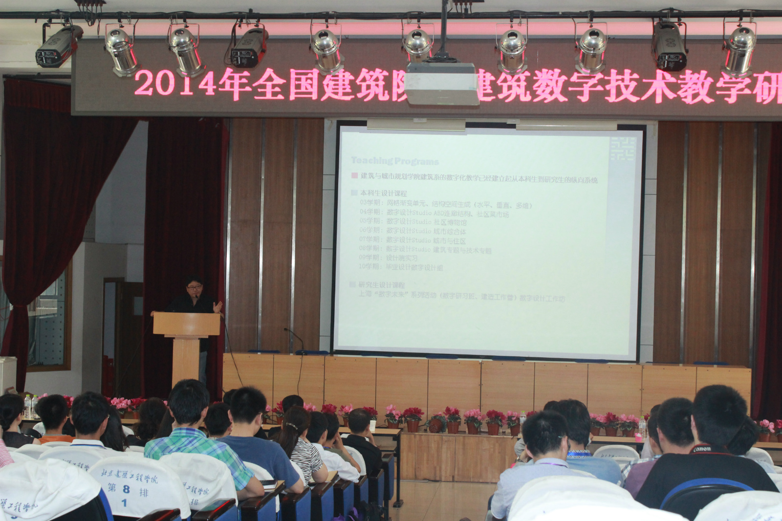 2014年6月21日,“2014年全国建筑院系建筑数字技术教学研讨会暨数字建筑设计学术研讨会”主题演讲在我校西城校区第二阶梯教室顺利进行。