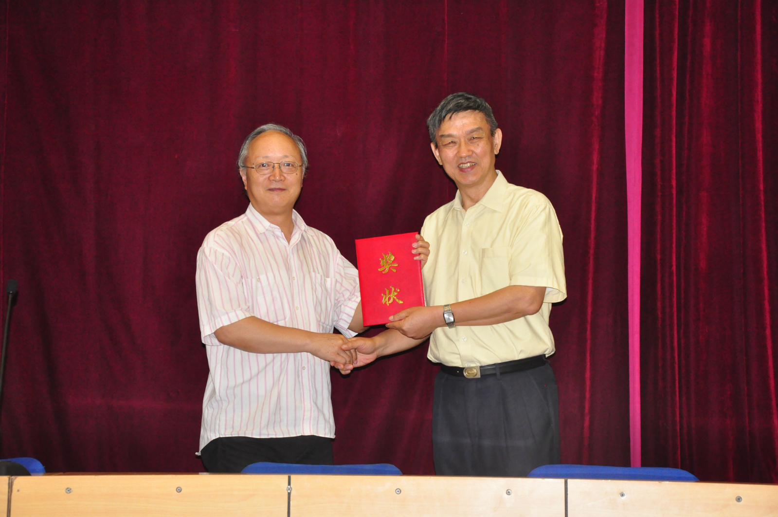 建筑学院院长刘临安教授为获得优秀组织奖的获奖单位颁奖