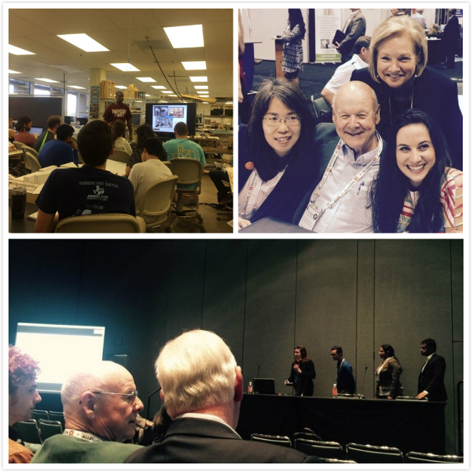左上图:建筑设计规范讲座,右上图及下图:参加美国医院建设大会(中为George J. Mann教授)