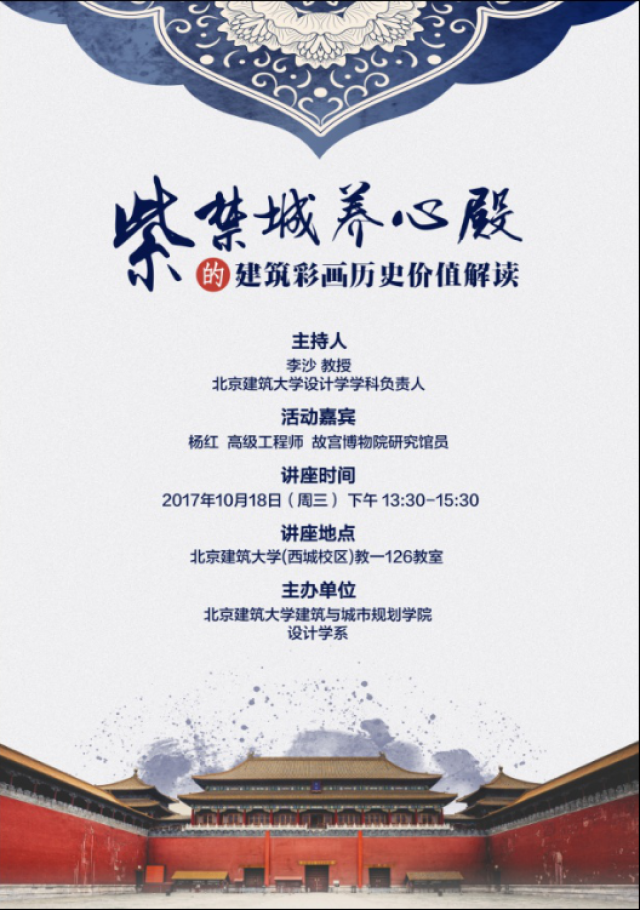 本次讲座邀请到故宫博物馆研究员、养心殿修复专家杨红,为大家讲述养心殿的建筑彩画与历史价值。