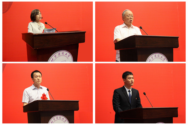 北京市优秀教师、马克思主义学院肖建杰教授,建筑与城市规划学院刘临安教授,北京市第十届青年教师教学基本功比赛一等奖获得者、经济与管理工程学院丁锐老师以及校学生会主席刘鑫博同学分别作为教师代表、退休教师代表、青年教师代表、学生代表进行了发言。