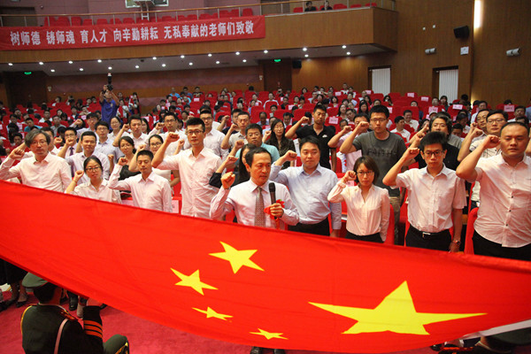 校长张爱林作了题为《立德树人,做学生成长成才成功的创新引领者》重要讲话。他代表学校向辛勤工作的全体教职员工致以节日祝贺和亲切慰问,向受到表彰的先进集体和个人表示热烈的祝贺,向从事教育工作满30年的教职工和光荣退休的教职工们为学校发展作出的重要贡献表示衷心感谢和崇高敬意。他说,新进教师面对国旗庄严宣誓,是对大学教师这一崇高职业的庄严承诺。刘临安教授、肖建杰教授和丁锐老师的发言体现了北建大老、中、青教师对教师职业崇高使命的深刻理解和实践,我们很受感动,更加坚定了对学校未来发展的信心。