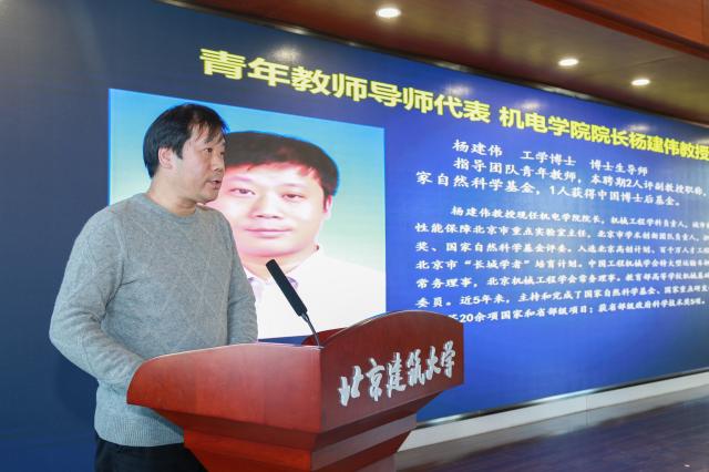 青年教师导师代表,机电学院院长杨建伟教授从言传身教、目标导向、团队帮扶三个方面分享了自己在指导青年教师成长工作中的切身体会,号召指导教师切实发挥好传、帮、带作用,扶持青年教师尽快成长为学校开云电竞买足球工作的中坚力量。