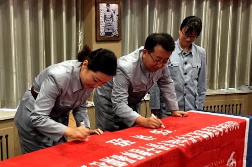 在为人民服务讲话台前,全体学员集体诵读毛泽东同志名篇《为人民服务》