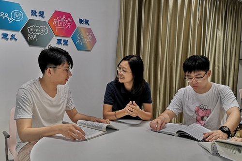 在机电学院,最热闹的就属“创新空间”了,无论是毕设论文指导、学业辅导,还是科技创新研讨,都会在这里进行。你看,工业工程系的秦华老师正在与大四学生就学业问题进行交流。
