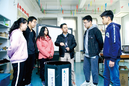 十余年的默默坚守,十余年的心血倾注,只为做好一件事——科技创新育人。在冲击第十届“挑战杯”首都大学生课外学术科技作品竞赛决赛特等奖奖项的备赛前夕,机电学院秦建军老师正在与学生团队沟通参赛作品“灵睿2自主跟随机器人”的技术细节。