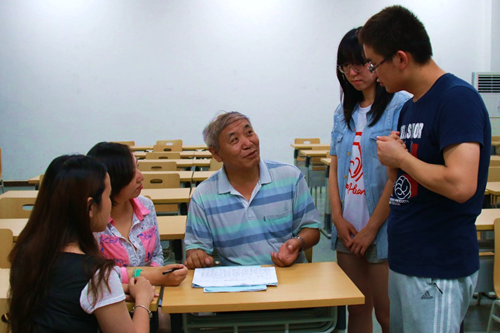 图1 王文海老师课后与学生交流