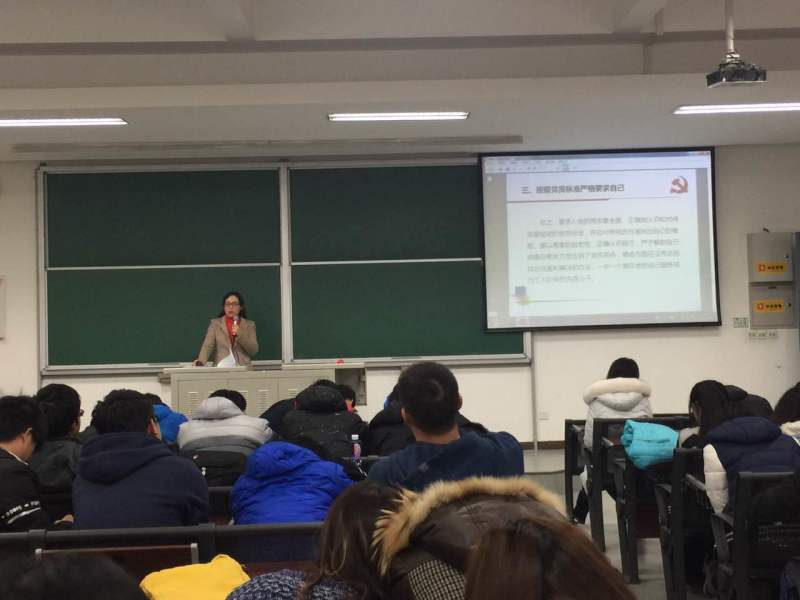 为坚定共产主义理想信念,明确当代大学生的历史使命和人生追求,2015年12月9日,理学院书记讲堂第一讲“入党二三事”在基础楼A座207教室正式开课。理学院党委书记程士珍为同学们讲授了题为“端正入党动机 争取早日入党”的入党第一课。