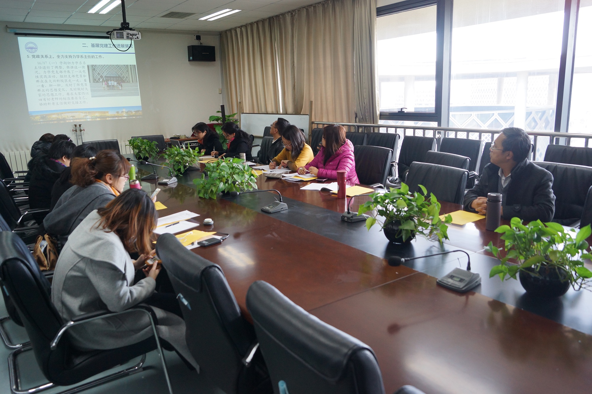 首先,程书记代表院党委说明了召开党支部书记抓基层党建工作述职会的重要意义,强调了基层党组织建设在“围绕中心抓党建,抓好党建促发展”中的重要作用,接着8名支部书记依次发言,本着实事求是的原则,汇报了抓基层党建工作责任落实情况、成效、问题和思路措施。最后,程书记进行了总结,她认为支部书记准备充分,认识到位,对支部存在问题查找准确,对2017年改进工作的思路措施明确,希望支部书记瞄准问题,攻坚克难,围绕2017年学院党政工作重点,发挥基层党组织战斗堡垒作用。