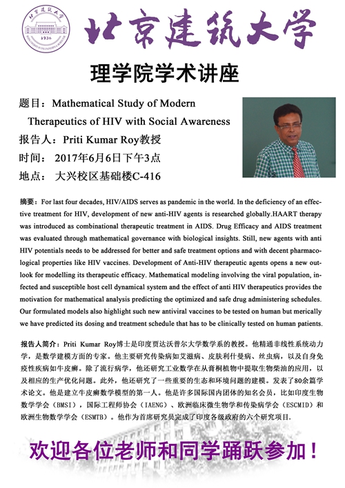学院公告 学院公告 您当前的位置: 首页» 学院公告 Mathematical Study of Modern Therapeutics of HIV witn Social Awareness 供稿: | 审核: | 摄影: | 发布日期:2020-04-23