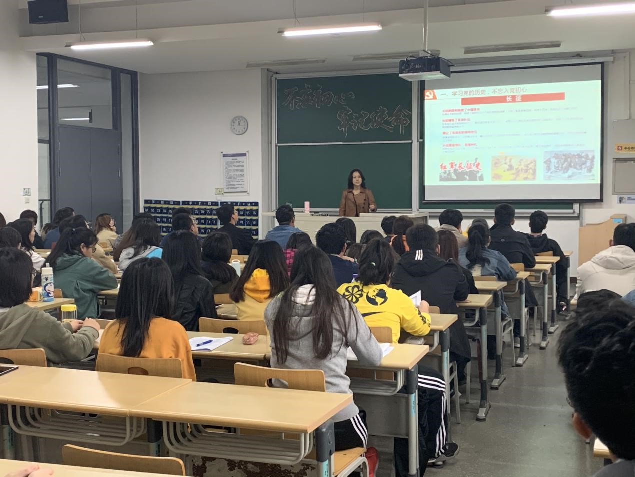 田芳以“坚定理想信念 强化责任担当 为实现中国梦而奋斗”为题讲授专题党课。她通过带领同学们深情回顾了中国共产党的诞生和光辉奋斗历程,让同学们认真学习历史,领会共产党人的初心,明晰自己的入党初心;引领大家学习党章党规,铭记党的纪律规矩就是党的生命线和全党团结的根本保证,牢记入党誓词;重温革命战争年代,英勇的共产党人矢志不渝的理想信念,强调当代青年坚定理想信念,强化责任担当;最后她强调作为学生党员和学生骨干,要在学业和工作生活中坚持“仰望星空,又要脚踏实地”,让理想信念在奋斗中发光。希望并鼓励同学们能够保持初心,怀揣使命,高举旗帜,砥砺前行。