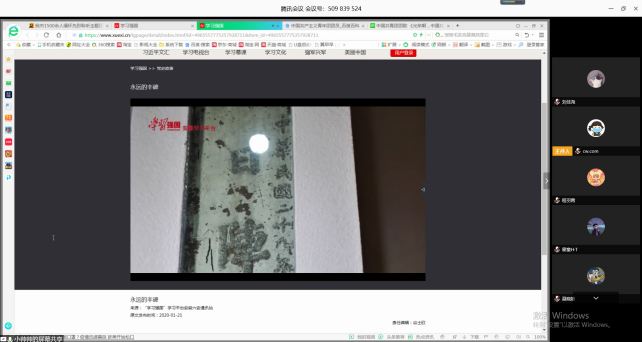 团课以“学习强国”推出的主题视频《永远的丰碑》视频学习开始,团干们认真观看视频,缅怀革命先辈,了解他们在时代的洪流中的英雄事迹,致敬他们以血肉之躯,钢铁般的意志筑起中华民族如林般的丰碑。