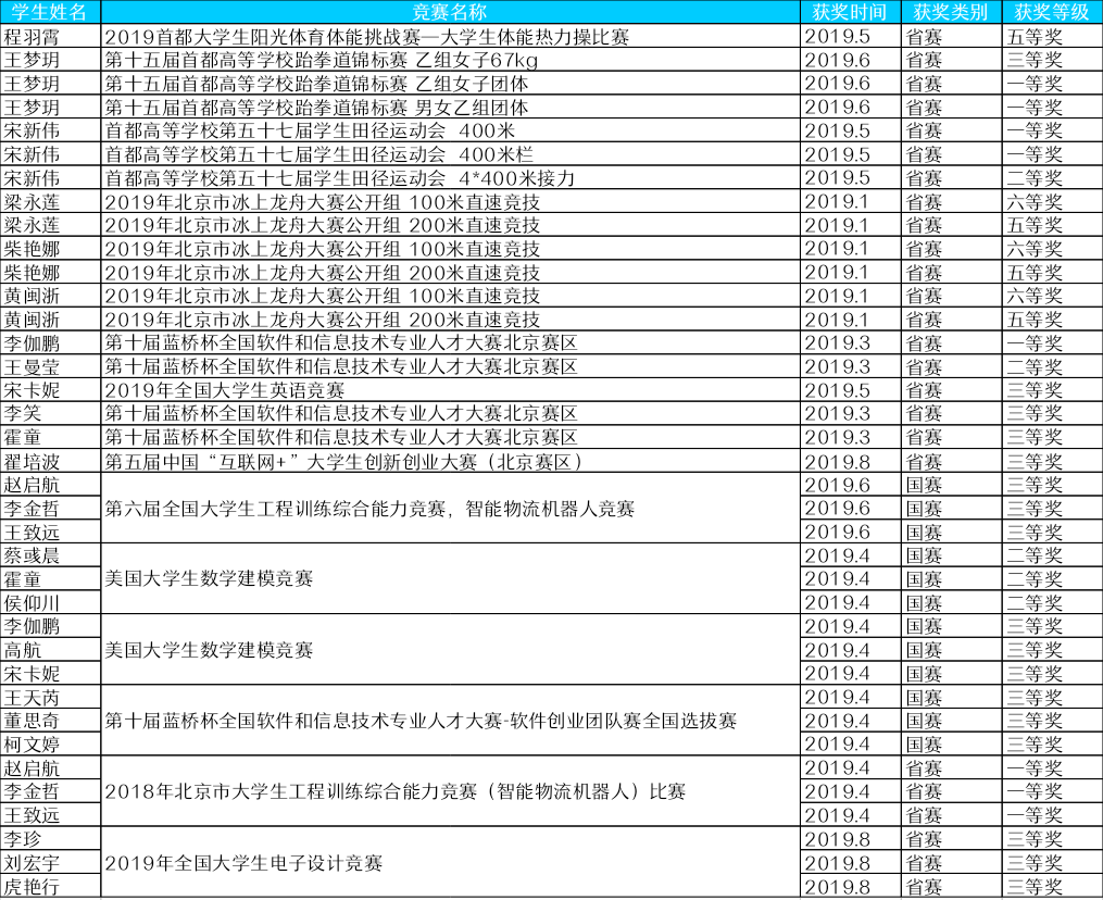 【2019】学生获省级及以上各类竞赛奖励汇总