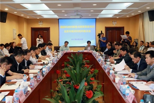北京市科委主任许强汇报了北京落实国家科技创新重点政策相关情况,北京市属高校院所代表汇报了政策落实过程中的成绩,对科技计划专项、科研经费管理、科技人员绩效评价、成果转化等现实中存在的一些难点、堵点提出看法。