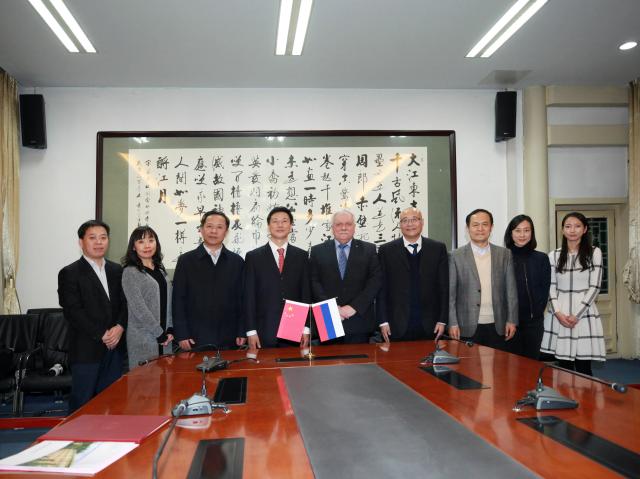 张大玉介绍了建筑学院基本情况,特别是建筑学学科发展和重点研究领域。建筑学是我校的优势特色学科,历史悠久,2012年教育部组织的全国学科评估中名列第9名。他欢迎库兹明院长利用此次来访,围绕“莫斯科城市设计”、“建筑遗产保护与修缮”等主题与我校师生进行交流。