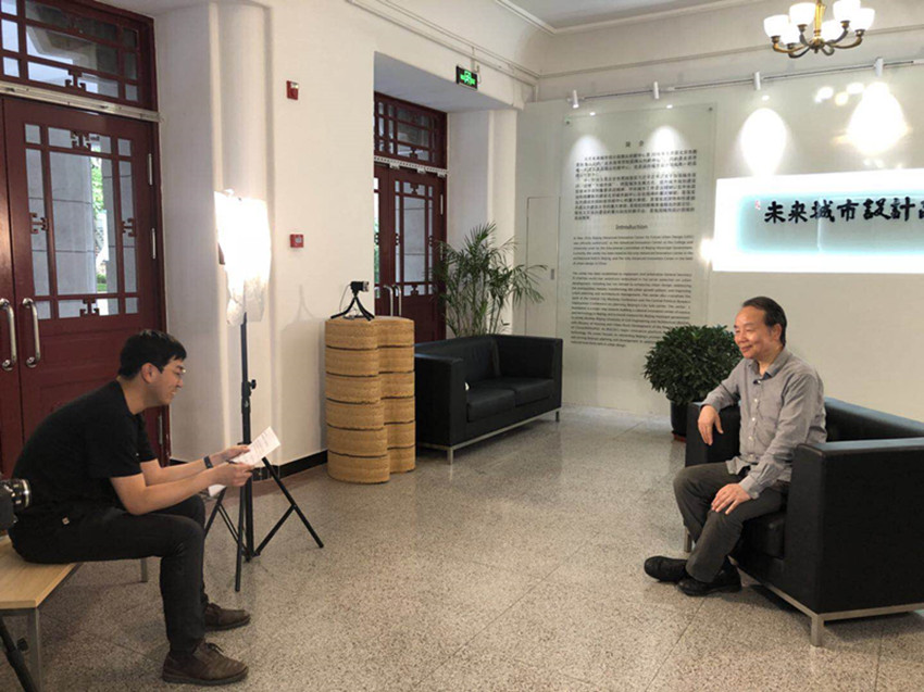 报告结束后,王建国院士在我校西城校区“王建国院士工作室”接受了我校高精尖创新中心学术专刊《城市设计通讯》的采访。针对提出的关于城市设计领域基础理论研究的重点关注点、如何把城市设计与当前的城市规划体系及管理工作接轨、城市设计在不同类型城市建设中的设计与实施、城市设计师角色定位、城市设计编制技术科学化等问题,王院士进行了深入浅出、极具远见的解答,为高精尖创新中心的基础理论研究、服务国家及首都重大需求的众多实践项目指明了方向,奠定了坚实的基础。