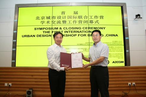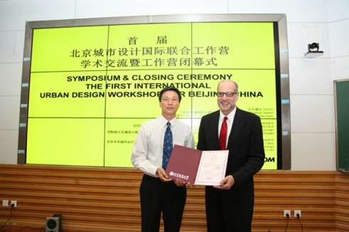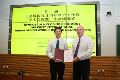 随后,举行未来城市设计高精尖创新中心聘任仪式。聘任刘泓志为我校未来城市设计高精尖创新中心国际咨询委员会委员,聘任Niall Kirkwood、Roy Strickland为未来城市设计高精尖创新中心学术委员会委员,通州区副区长刘贵明和校长张爱林分别为三位专家颁发聘书。