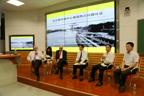 在对话环节,副校长张大玉首先介绍了通州区规划问题的背景,校长张爱林、通州区副区长刘贵明、哈佛大学教授Niall Kirkwood、密歇根大学教授Roy Strickland、AECOM亚太区资深副总裁刘泓志这五位嘉宾就“规划定位的不断变化与城市规划设计的调整”“规划设计从理念到策略再到实施”“基础设施升级与对建成区的影响”“如何应对新增人口的压力(非首都功能)与公共服务的升级”等问题展开了热烈的讨论。在场的师生们也积极提出问题,各位嘉宾均予以耐心解答,现场气氛热烈。