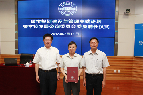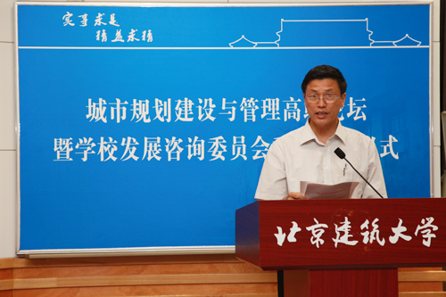 校长张爱林在聘任仪式上讲话。他首先代表学校对仇部长长期以来对学校的关心和指导表示衷心感谢。他说,在学校“十三五”开局之年和“提质、转型、升级”关键节点,举行城市规划建设与管理高端论坛暨学校发展咨询委员会委员聘任仪式,是落实习近平总书记系列重要讲话精神和中央城市工作会议精神的具体举措。通过持续举办国内外高端研讨、创新研究,推进符合中国国情和北京市情的城市设计、规划、管理建设,提高城市管理水平和工程管理水平,进一步加快北京“未来城市设计高精尖创新中心”建设,不断提升学校的办学水平和办学层次。