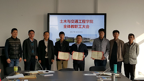 最后,学院领导为获得中国建设教育协会优秀论文的老师颁发证书。