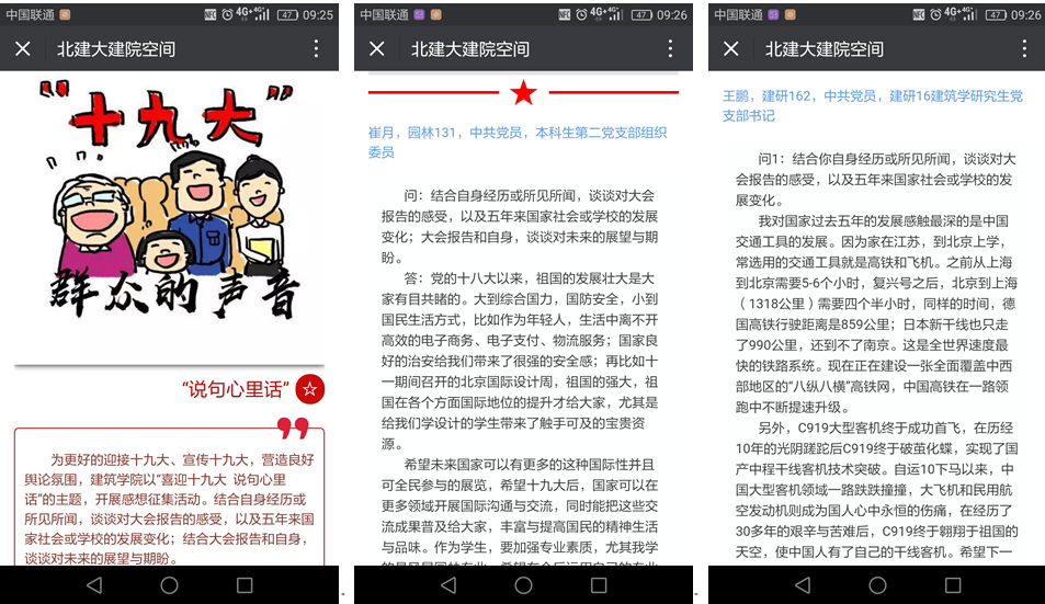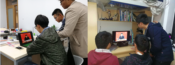 10月18日上午9时,建筑学院学生党员团员热切关注大会进程,集中在西城校区第三阶梯教室观看中国共产党第十九次全国代表大会的开幕会。部分学生自发地在宿舍、教室等地,通过电脑、手机一起聆听党的十九大工作报告。本次大会,是在全面建成小康社会决胜阶段、中国特色社会主义发展关键时期召开的一次十分重要的大会。党团员纷纷表示,收听收看党的十九大开幕式,学习宣传贯彻党的十九大精神,聆听习近平总书记重要讲话,心情激动、获益匪浅,一定要将会议精神与学习生活进行紧密联系,知行合一,为中国的发展贡献力量。