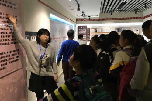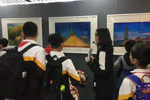 图书馆直属党支部书记兼副馆长毛发虎致欢迎词。在学生馆员肖嘉琦、刘雨峰、史珺妍、孙岩、展伊迪、张晨琪的有序引领下,亦庄一小的小读者们了解了图书馆的馆藏布局和功能,近距离地感受中华典籍的魅力,体验了电子图书借阅机等新兴阅读技术;在孙维、国佳、孙薛煜、殷月等四位学生馆员的耐心细致讲解下,孩子们领略了中华建筑之美,丰富了中国古代建筑知识;通过“一带一路”历史建筑摄影和手绘艺术展的讲解,激发了孩子们的民族自豪感和使命感。