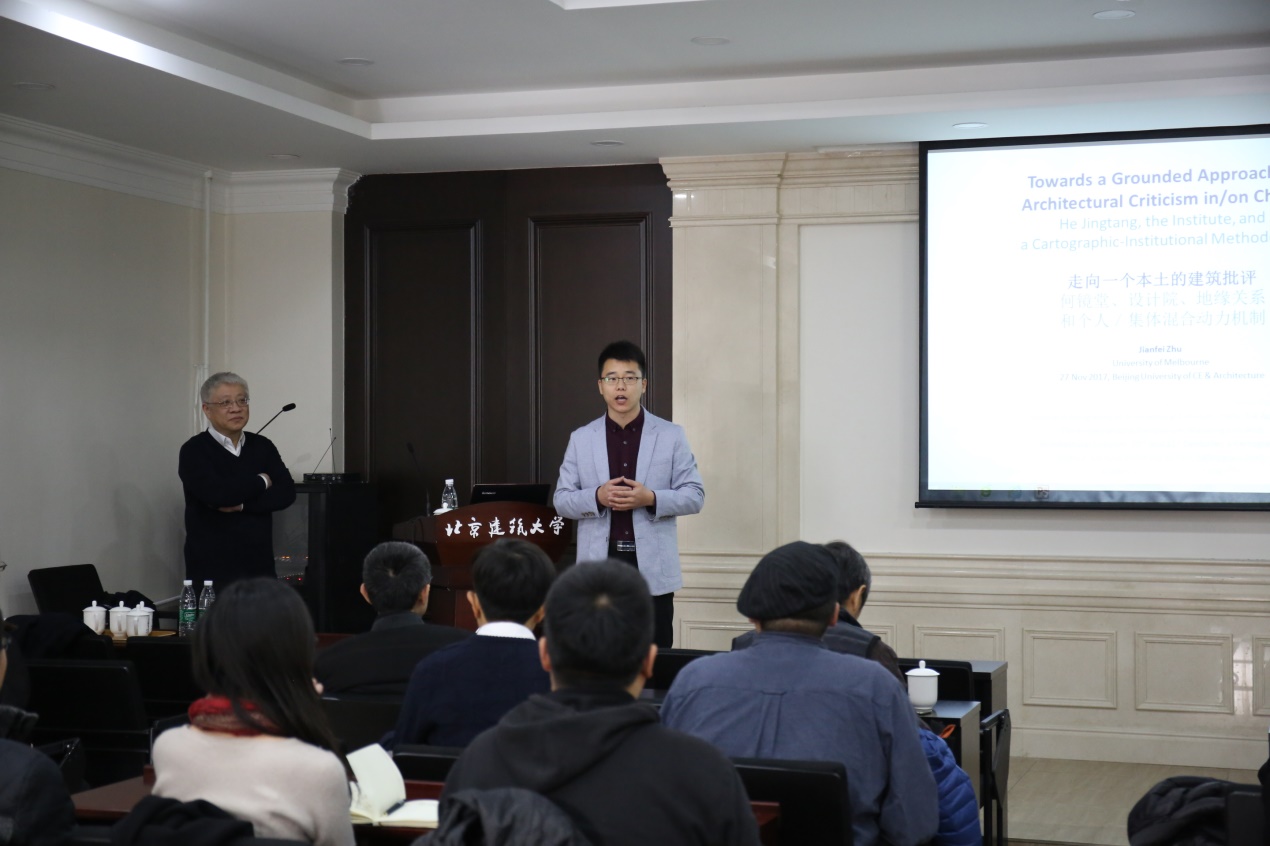 11月27日下午,墨尔本大学设计学院朱剑飞教授到访开云电竞pg软件,并在西城校区教1-126举办题为“走向一种本土的建筑批评:何镜堂、设计院、地缘关系和个人与集体的混合动力”(Towards a Grounded Approach in Architectural Criticism: He Jingtang, the Design Institute and a Cartographic-Institutional Methodology)的学术讲座。讲座由我院青年教师丁光辉主持,建筑学院副院长胡雪松教授、王韬老师,部分研究生本科生,一些校外专家学者和建筑师出席、讨论。