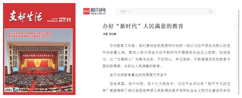 发表文章《不忘初心 牢记使命 办好“新时代”人民满意的教育》