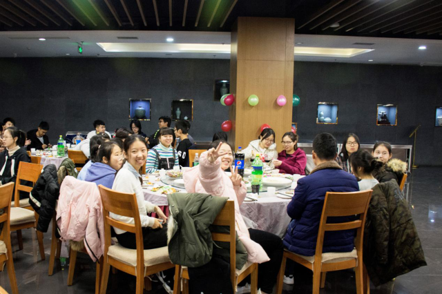 师生同乐庆元旦,携手共进迎新年。12月29日晚,我校大兴校区臻园食堂年味浓厚,笑语不断。学工部副部长蔡思翔,土木学院党委副书记车晶波,土木学院董军教授、杨静老师、辅导员老师们以及40余名本科生和研究生欢聚一堂,一起包饺子迎新年。