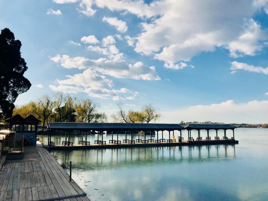 (杨柳依依,使昆明湖一下子温柔了起来)
