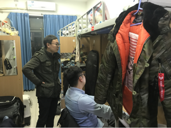 检查中,张鹏与每一个在校宿舍同学分别进行细致交流,对存在安全隐患、卫生较差的宿舍进行批评教育,并关切地询问他们毕业去向等情况;叮嘱大四毕业生要给自己的师弟师妹做好表率作用,珍惜最后半个学期的大学生活,不忘初心,写好毕业论文,做好毕业实习,找个好工作,为自己、为家人、为学校争光添彩。对于没有在宿舍的学生,张鹏一一询问具体情况,掌握每一名学生动态。