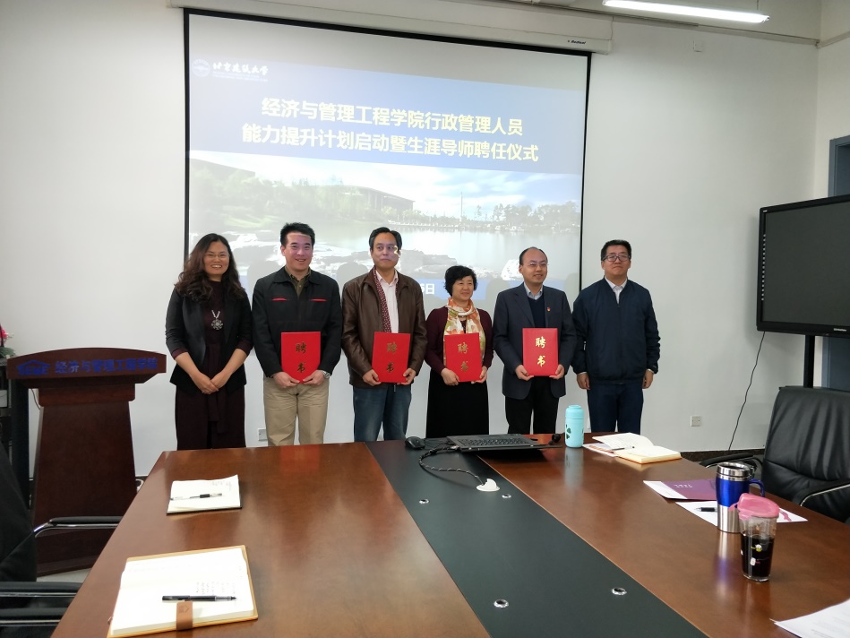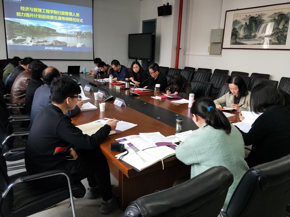 “经管学院管理人员能力提升计划”是学院贯彻落实学校2018年党政工作要点的具体举措之一,旨在加强经济与管理工程学院管理人员的培养,做好“传、帮、带”工作,打造锻炼年轻干部成长的平台,通过集中研读党政文件和工作要点等学习材料,行政管理人员专题培训,以组为单位组建科研团队,结合工作开展研究;校内外、京内外实践、交流、调研等方式不断提高学院管理人员政治素质、业务能力、科研技能和实践经验,促进行政管理人员担当重任、全面成长,更好地服务新时期学校“十三五”建设和全面提质转型升级。