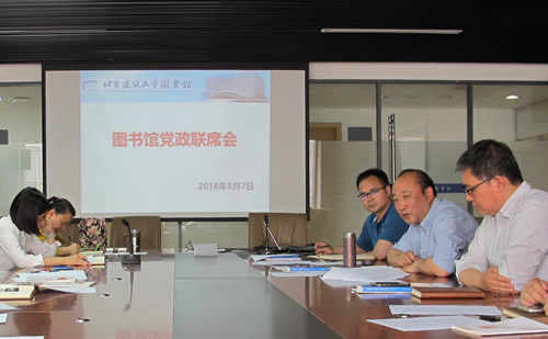 5月7日下午,图书馆在大兴校区云图会议室召开党政联席会,对2018年图书馆党政重点工作落实情况进行中期检查。