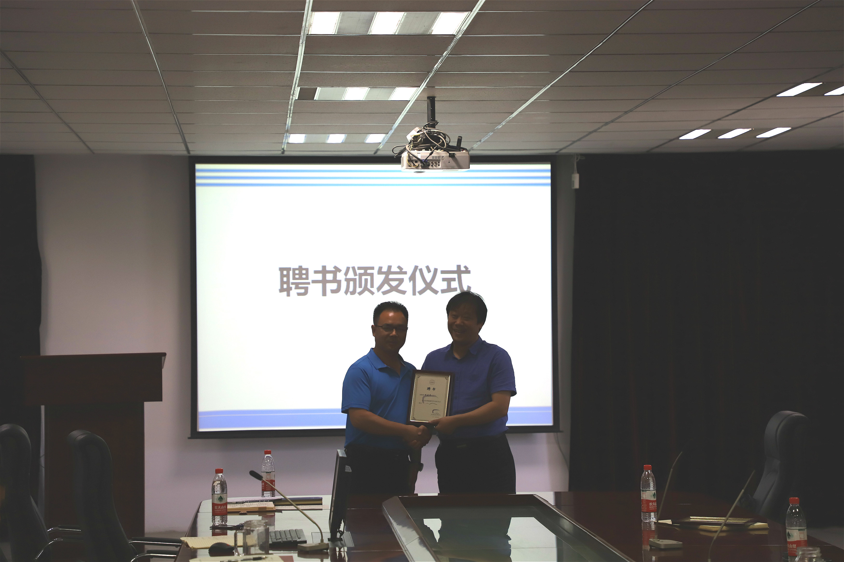 毛发虎首先为机电学院院长杨建伟、副院长张军颁发了“图书馆资源建设专家委员会委会”聘书。