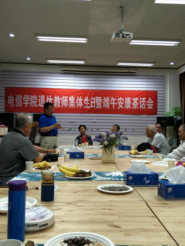 6月8日上午,电信学院在西城校区图书馆1层教工之家第二活动室举办退休教师集体生日暨端午安康茶话会。电信学院退休教师20余人参加,电信学院党委书记张雷、院长郭茂祖、党委副书记关海琳、院长助理王晓辉、办公室主任师洪洪参会,茶话会由张雷主持。
