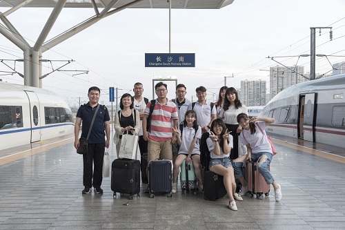 2018年7月16日,实践团奔赴长沙,火车上成员们抓紧时间召开工作会,进一步细化长沙之行,为未来几天的行程做足准备。长沙之行将围绕“智慧城市”及“装配化”两个专业核心关键词,走访三一筑工以及中民筑友两家企业,开展支部共建和红色实践教学,在实践中继续了解行业发展状况,吸取经验,形成书面化成果,为智慧城市及装配式建筑发展现状总结归纳进课堂贡献团队力量。