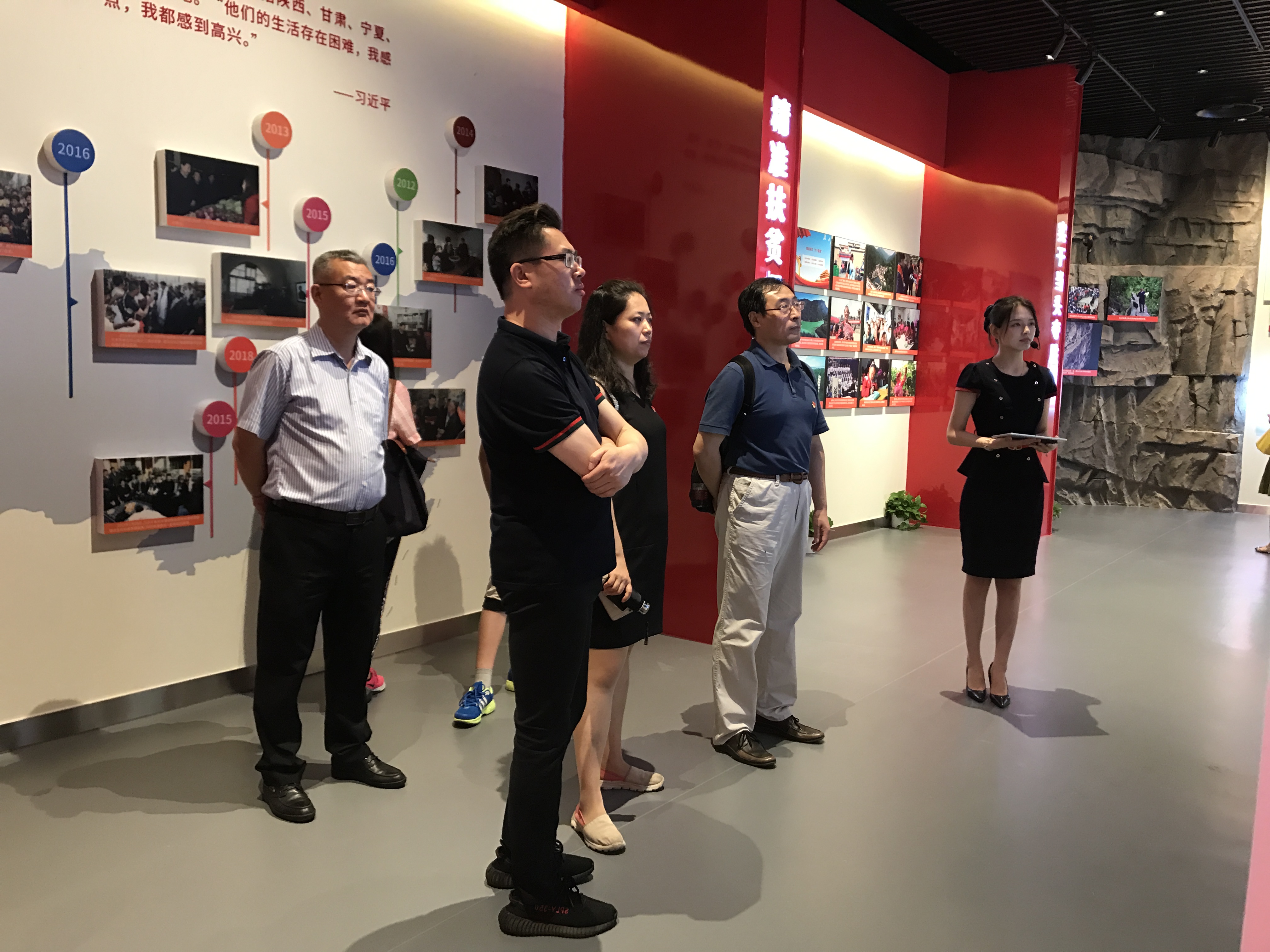 最后一个展厅,主要介绍了北京市房山区的红色历史,通过“传承红色基因”、“担当时代使命”和“党建引领发展”三个板块,结合房山地区典型人物、典型事件、十八大以来区域建设、党建创新及廉政建设成果、贯彻学习十九大等方面,以现代技术,打造了立体化、具有地域特色的历史和现实相结合的空间。