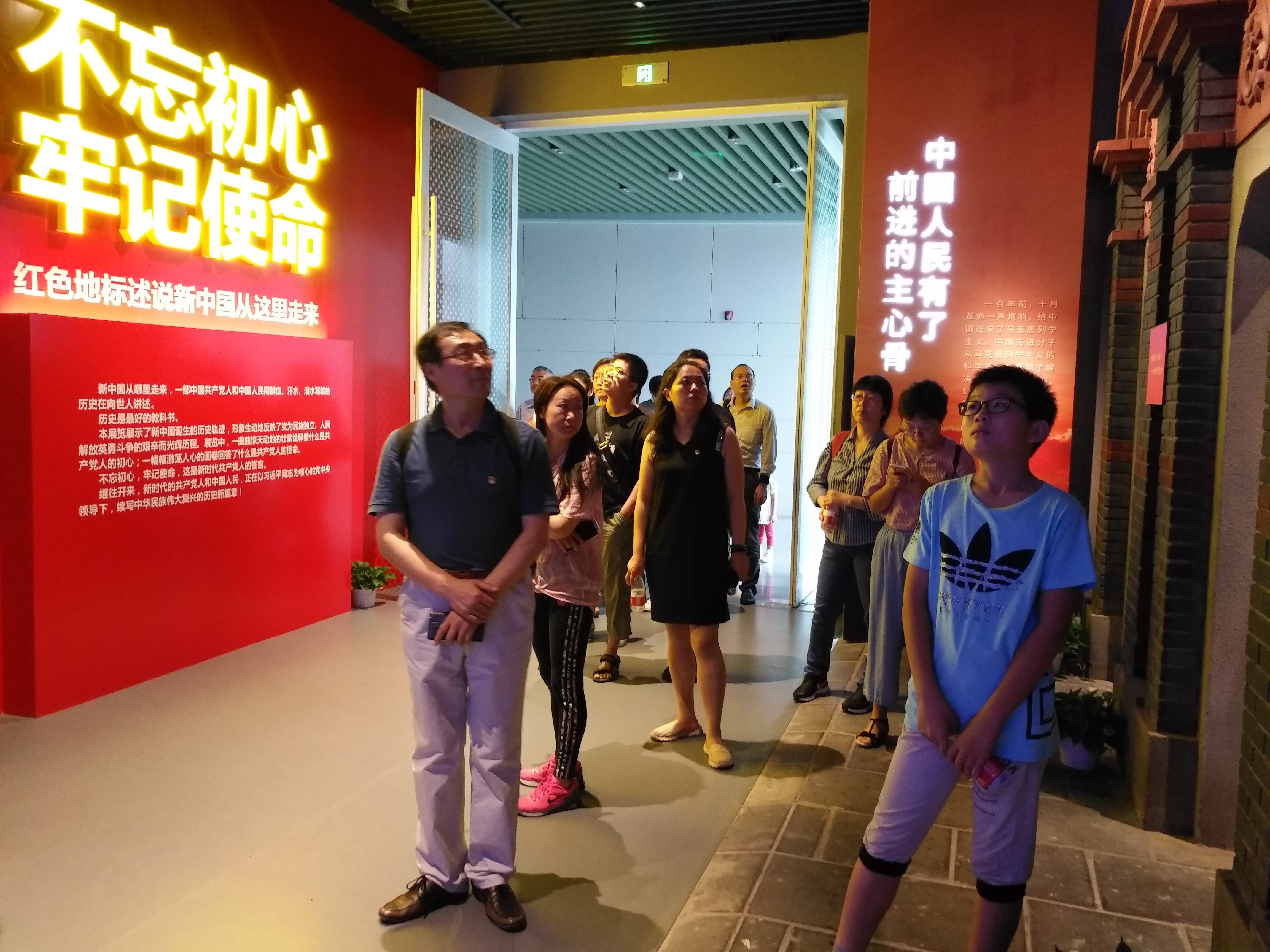 接着,党员们来到了第一个题为《不忘初心,牢记使命——红色地标述说新中国从这里走来》主题展馆。这个展厅选择了八个承载革命传统、英雄史诗和精神伟力的红色地标,通过情景复原的方式,采用专业讲解、视频播放、3D效果呈现、图文解说等形式,展示了中国共产党成立以后领导新民主主义革命和社会主义革命、建设的历史事件。